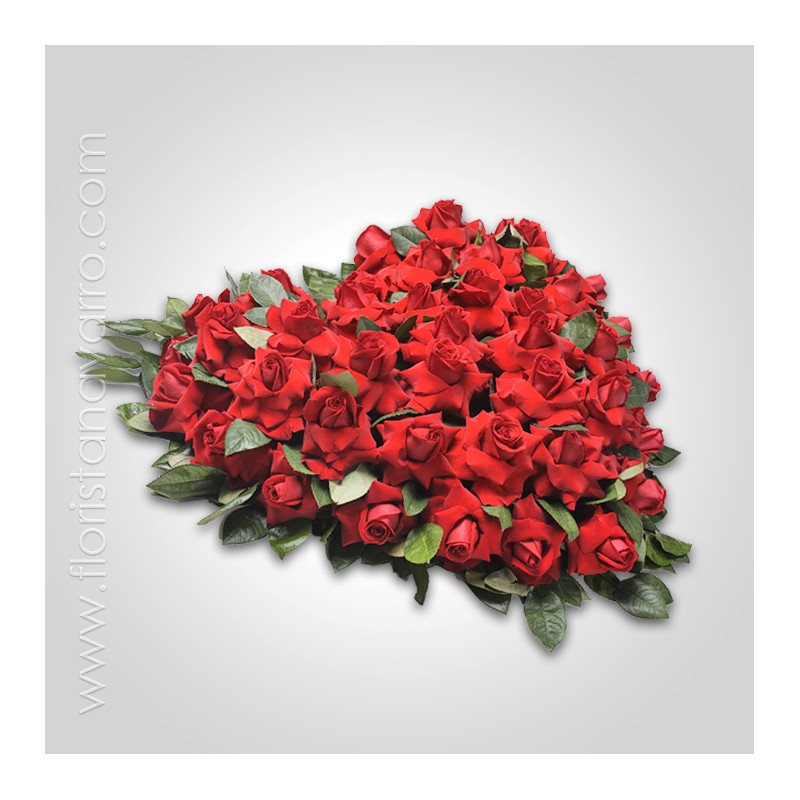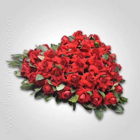 Floral arrangement in the shape of a heart formed with natural roses. A perfect floral small present to express your love for that person.